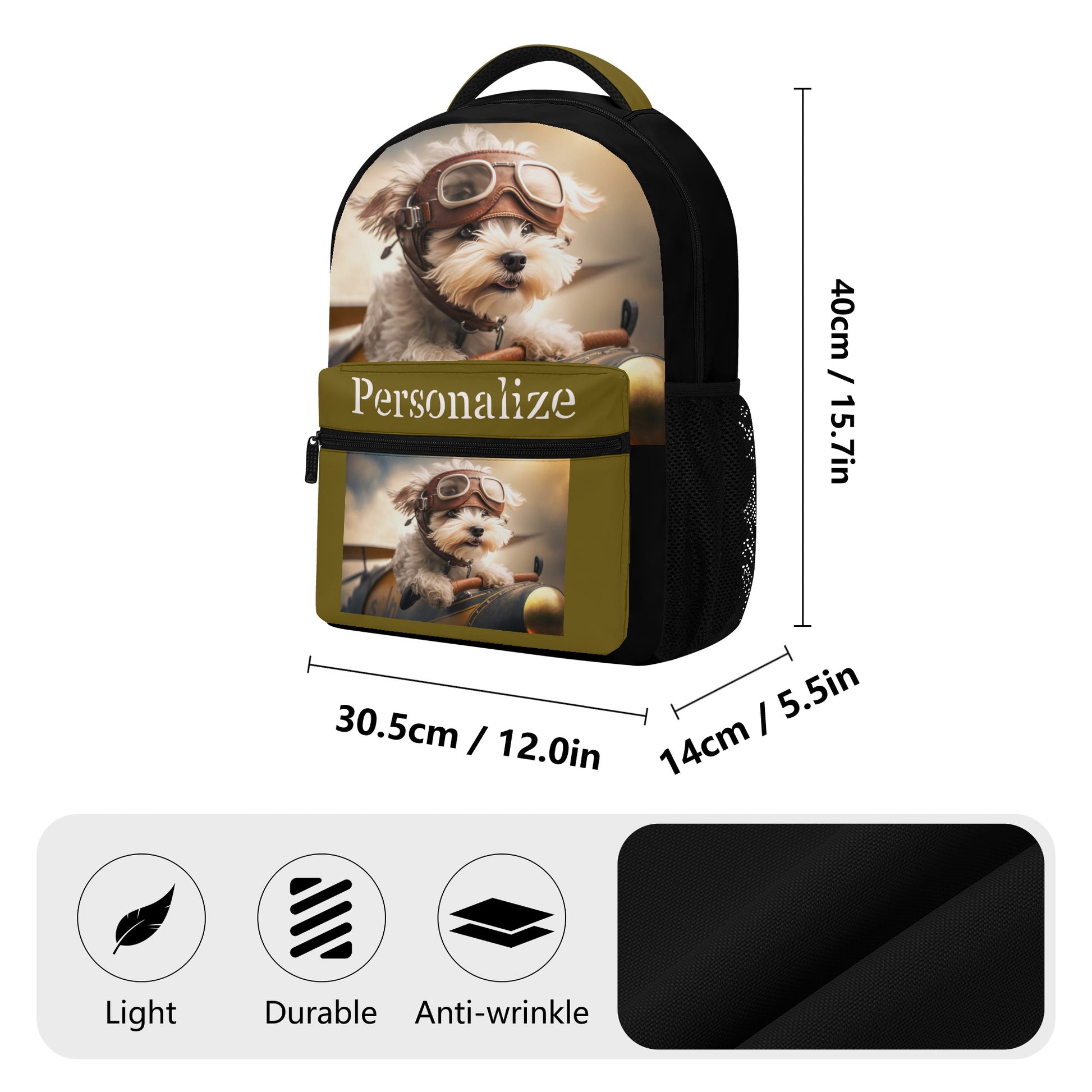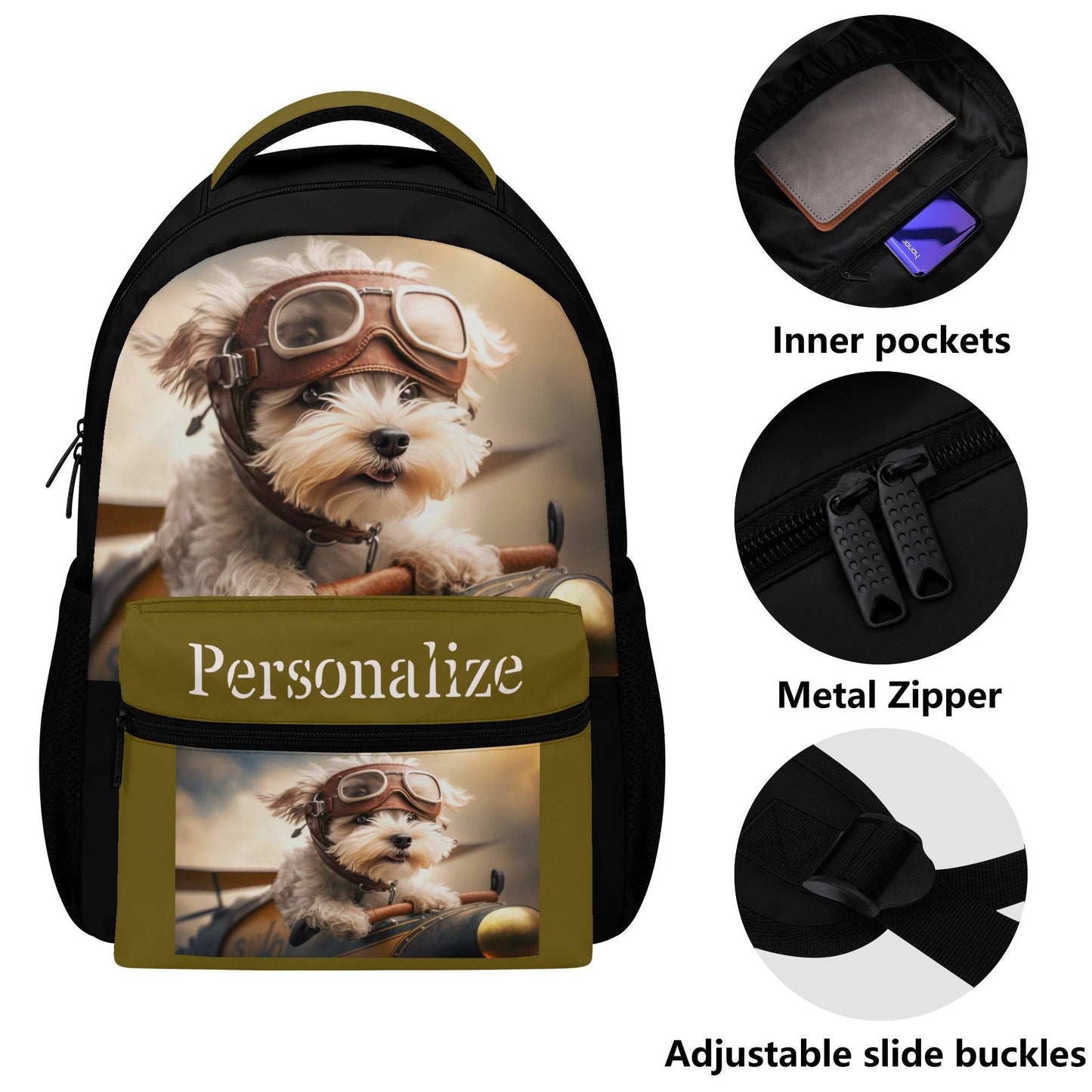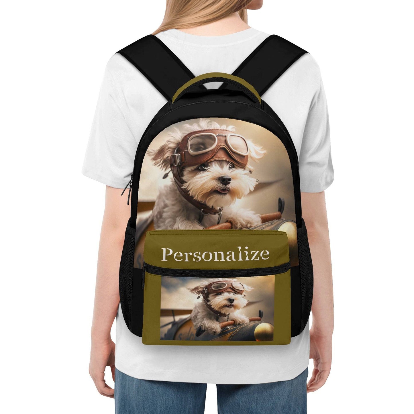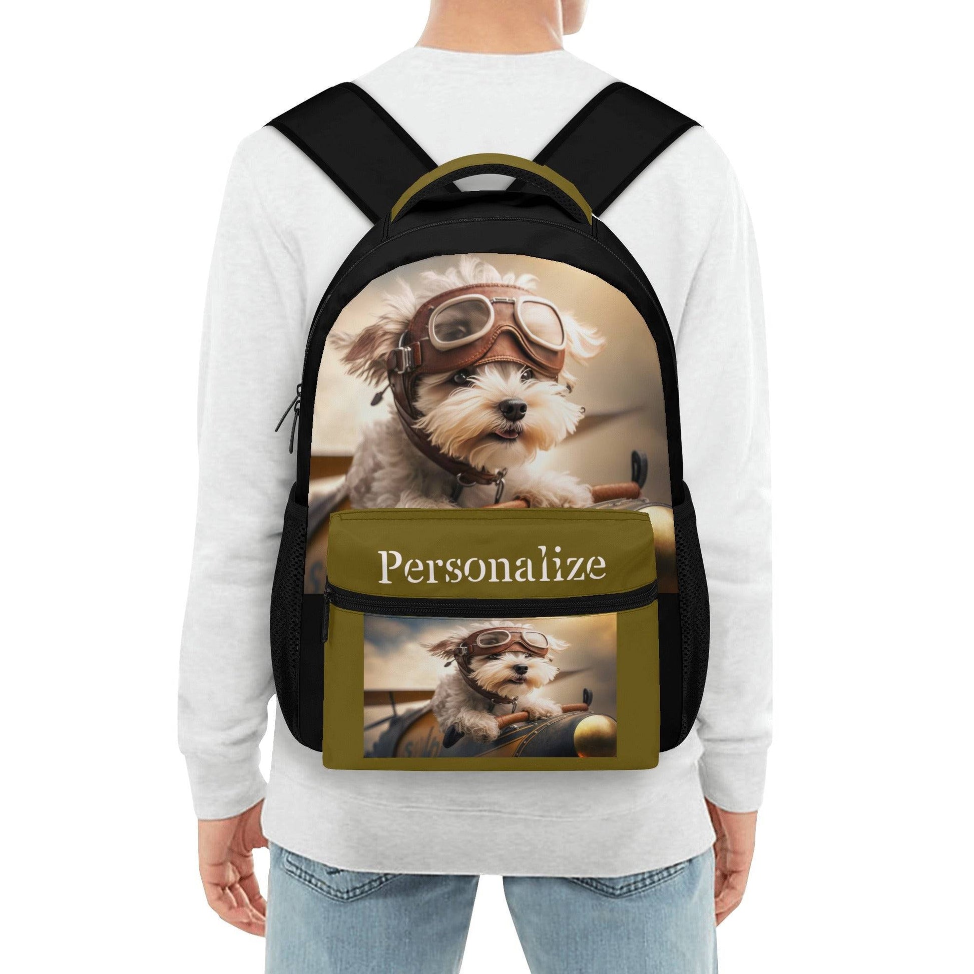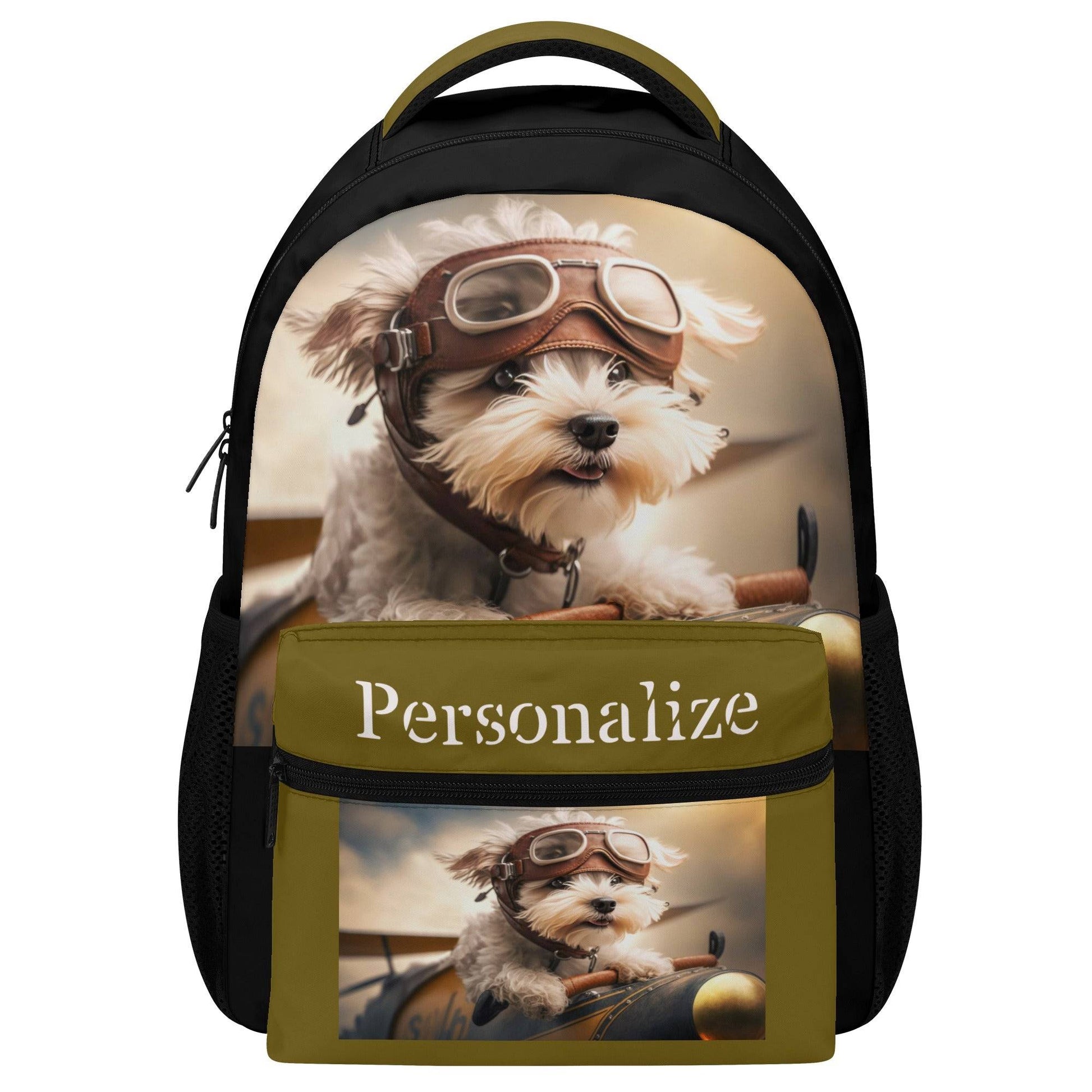 Backpack Puppy Dog Pilot Casual Style School Supply Bag