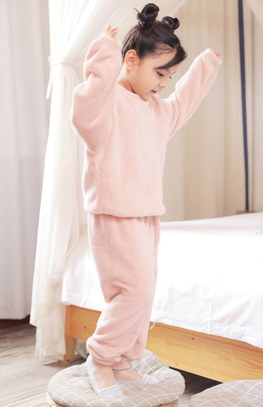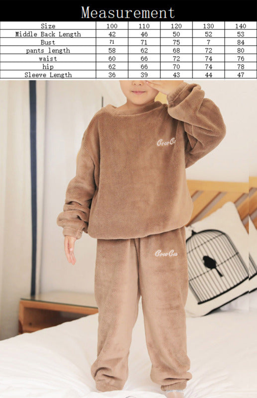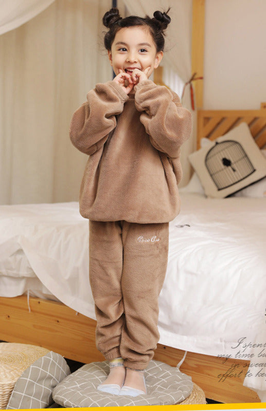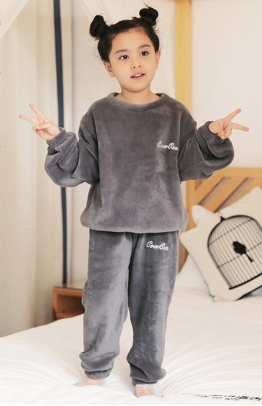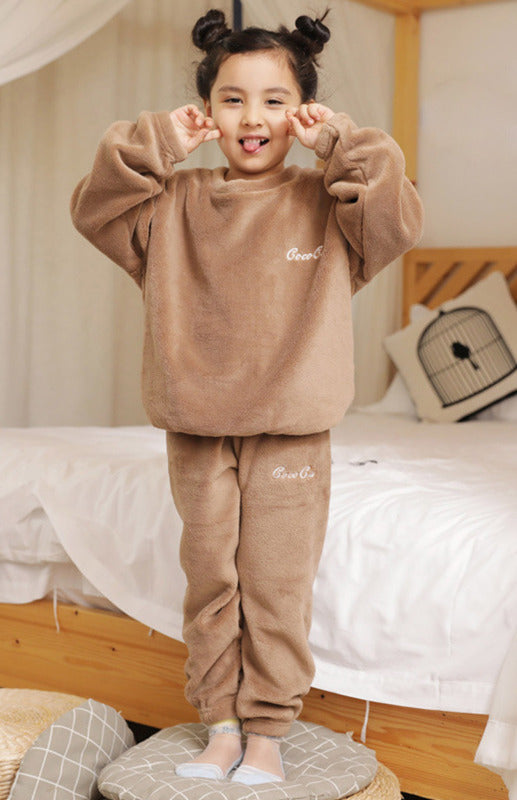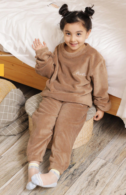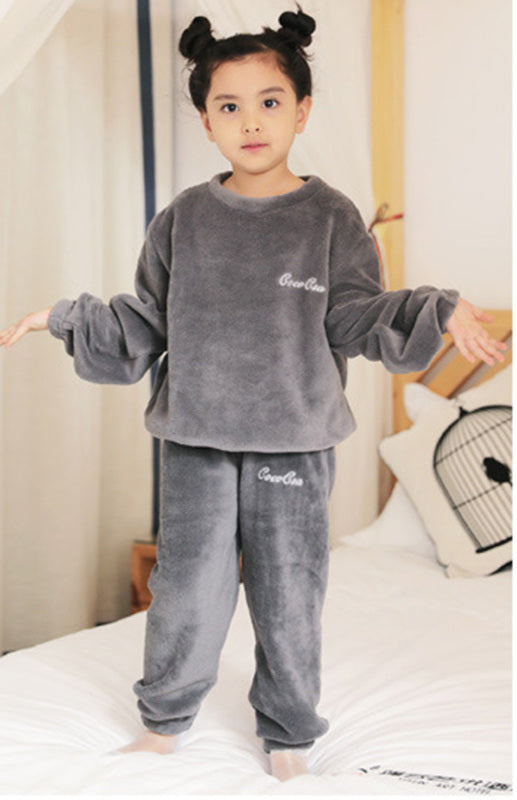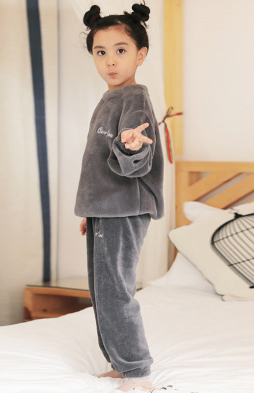 Children'S Embroidered Coral Fleece Pajama Set in pink, grey, brown