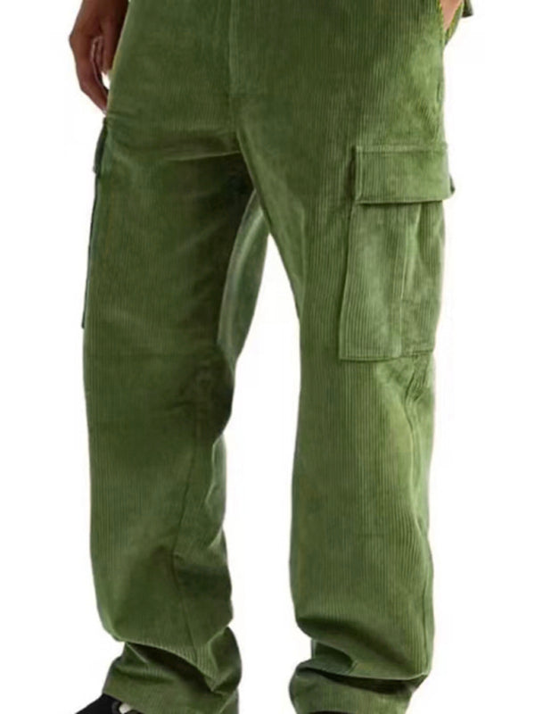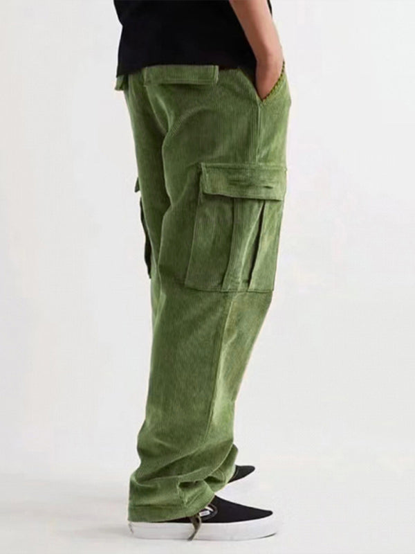 Corduroy multi-pocket straight trousers men's sweeping pants men's casual loose trousers
