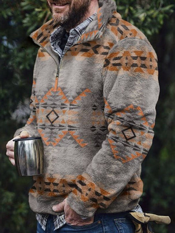 Men’s Faux Fur Quarter Zip Up Sweatshirt
