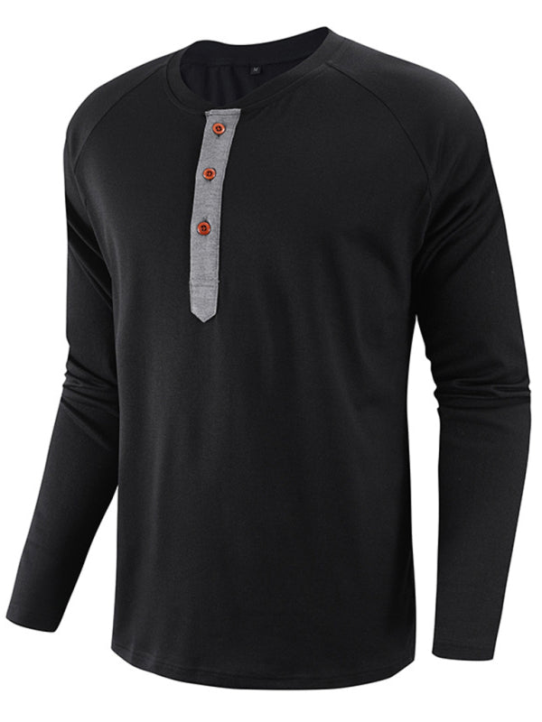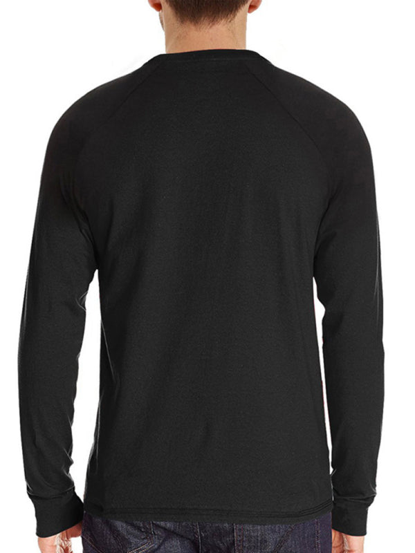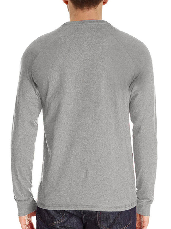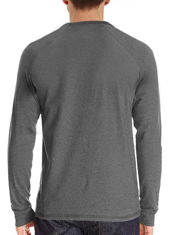 Men's Knitted Round Neck Button Long Sleeve T-Shirt