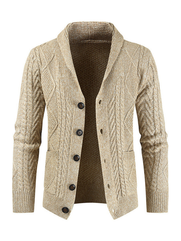 Men's Solid Color Shawl Collar Cable Stitch Cardigan