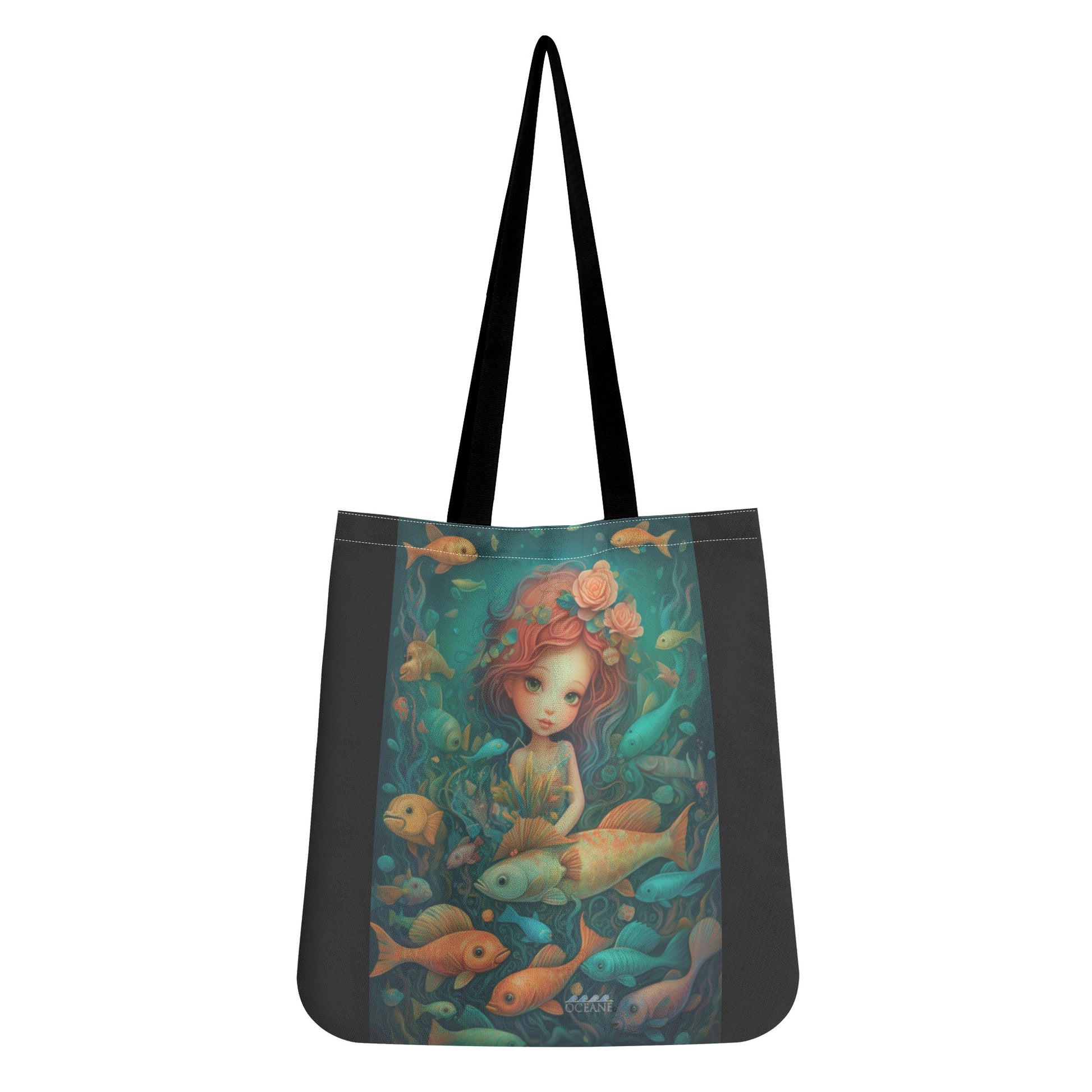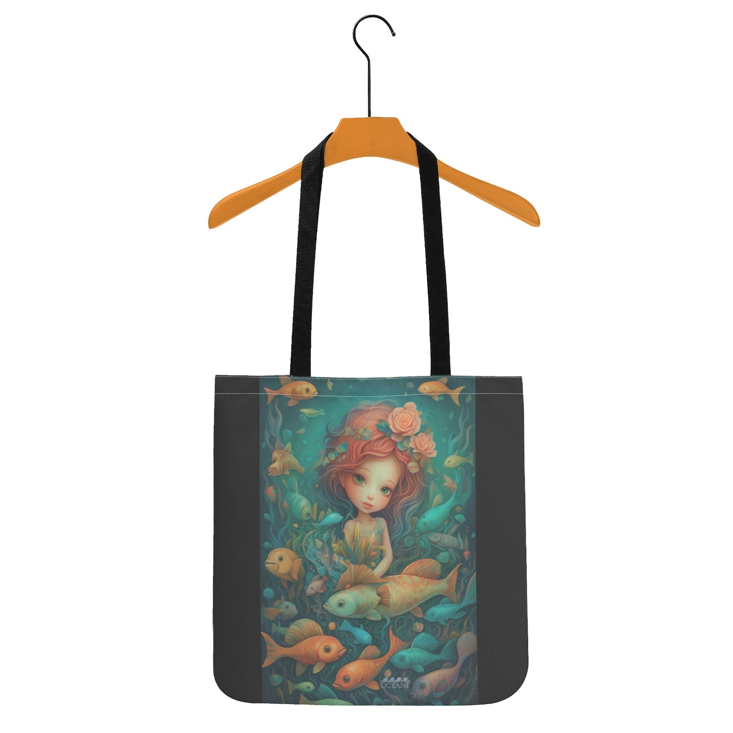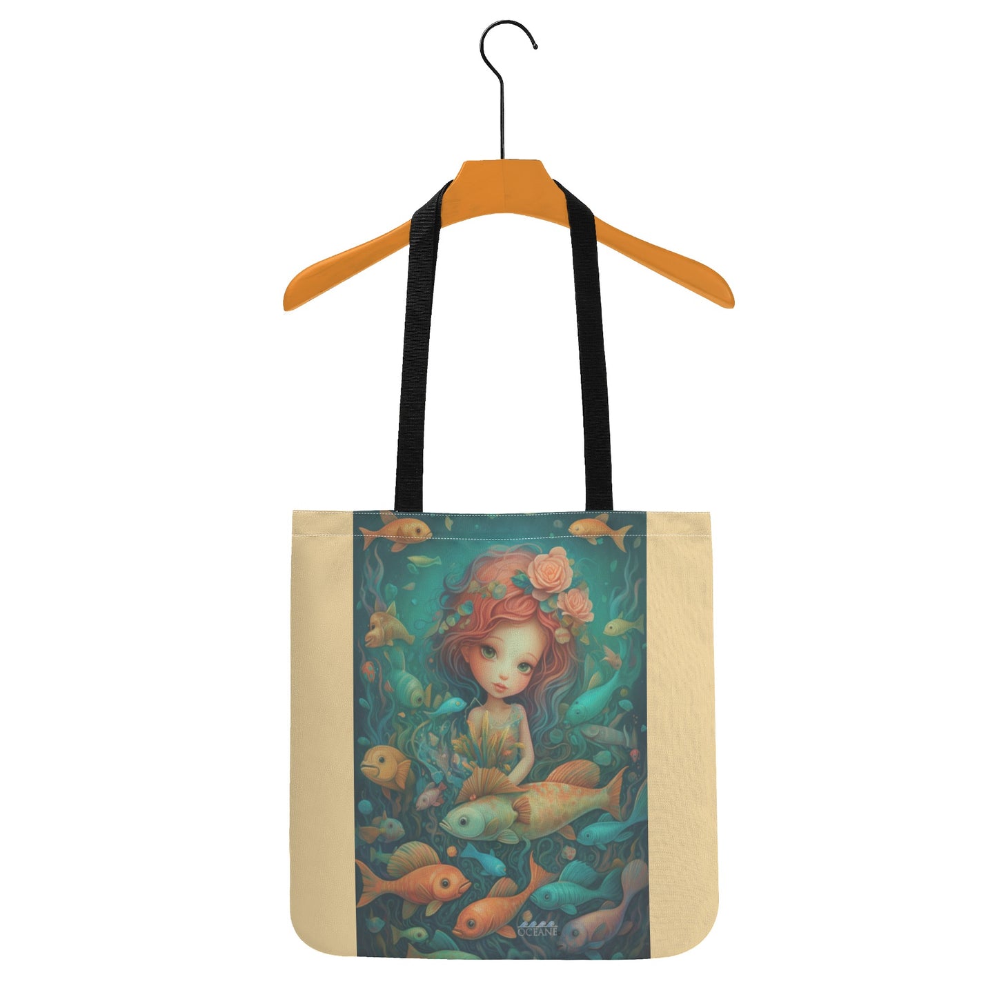 Mermaid Fish Friends Cloth Tote Bag Beautiful! Teal, Tan, & Black