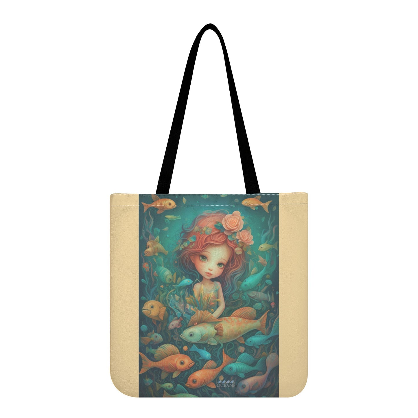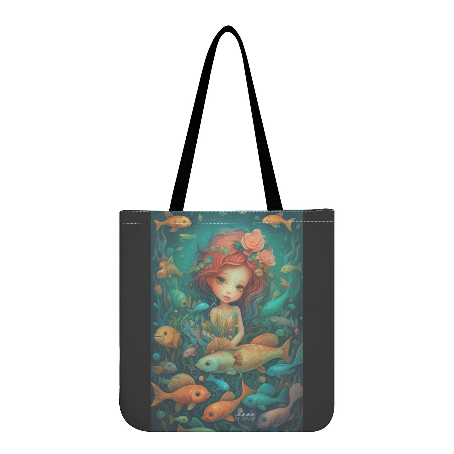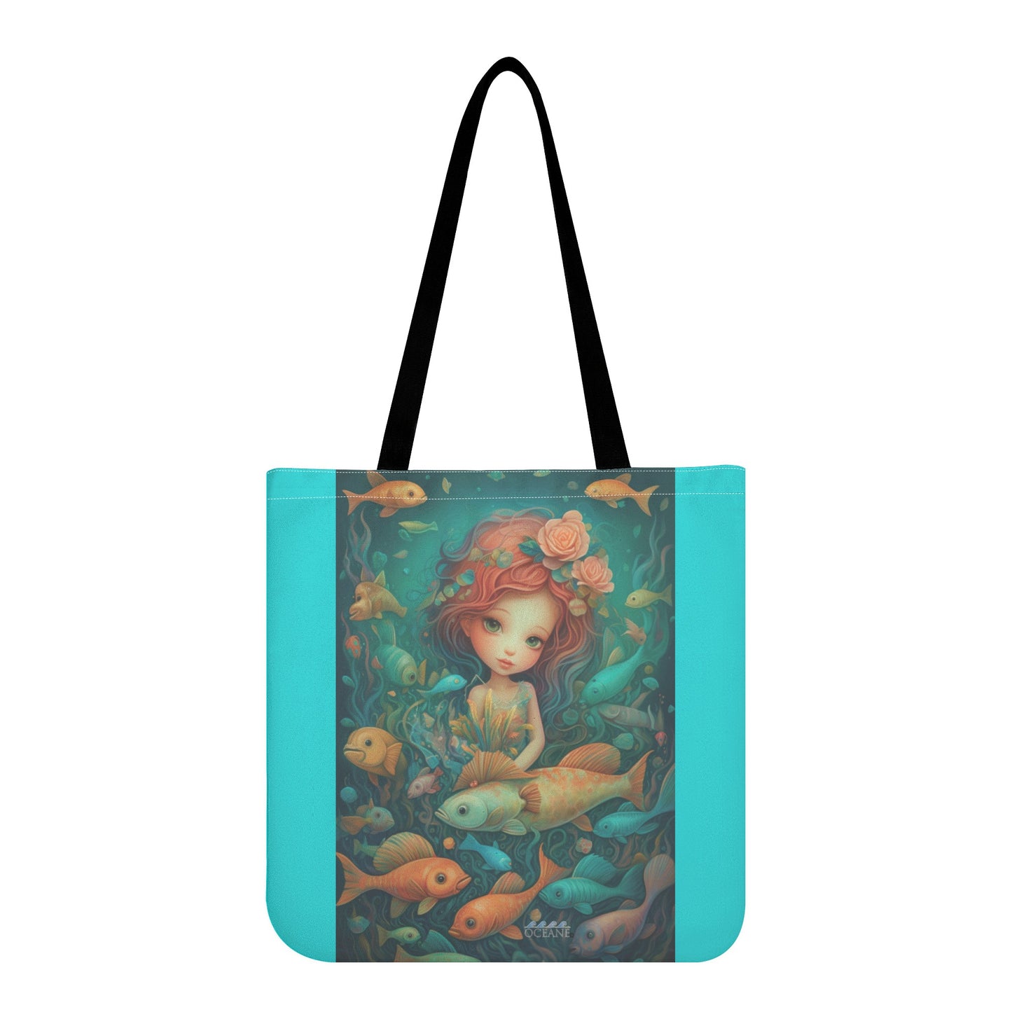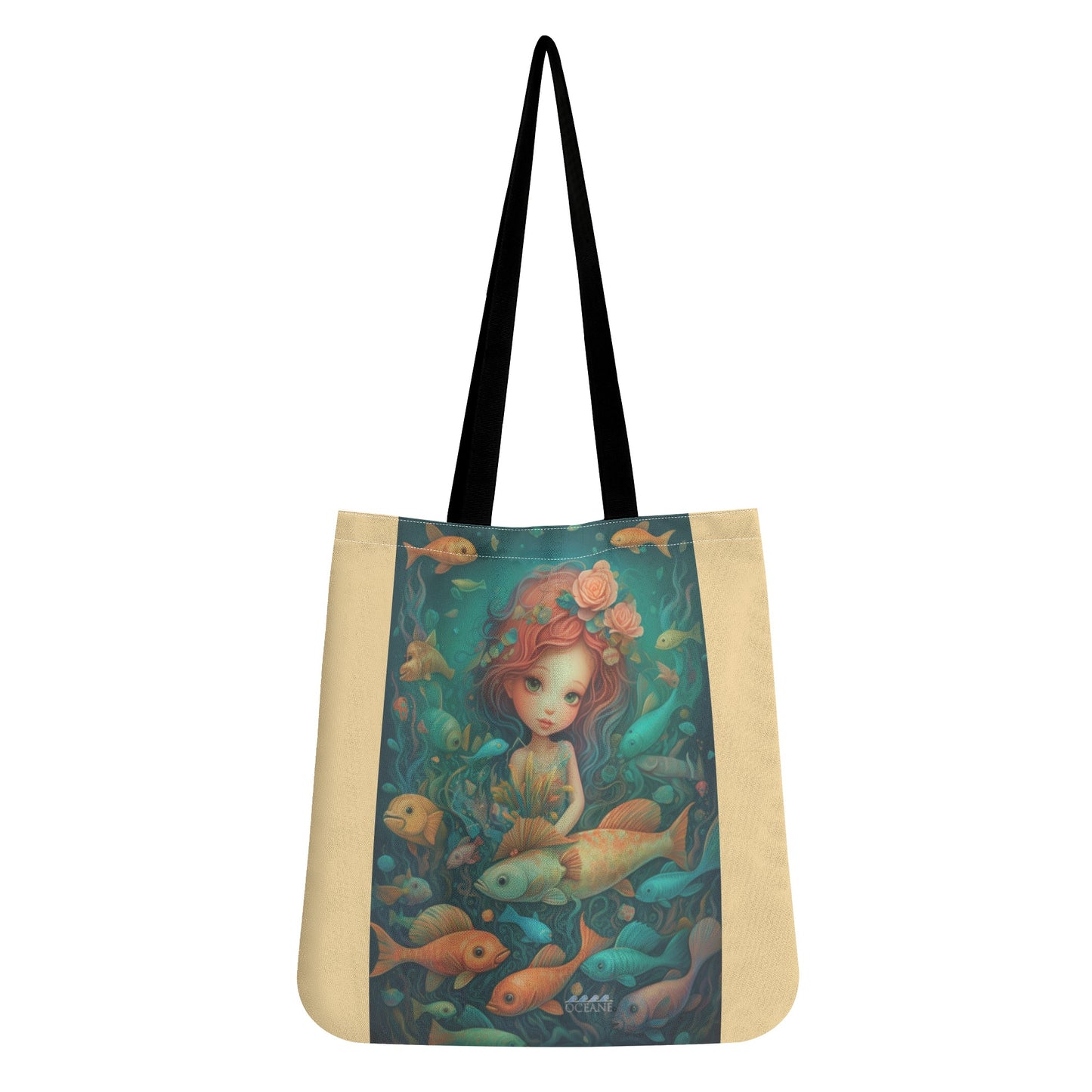 Mermaid Fish Friends Cloth Tote Bag Beautiful! Teal, Tan, & Black