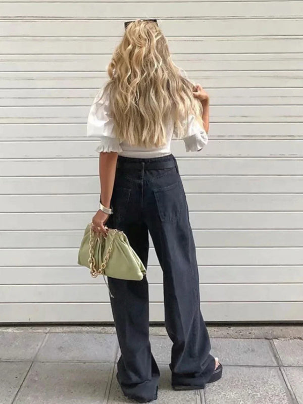 New high-waist floor-length loose slimming straight wide-leg jeans