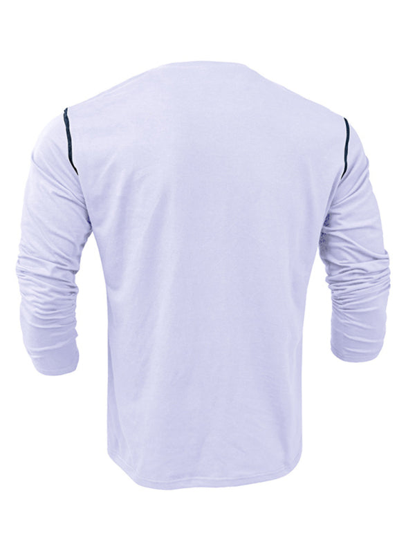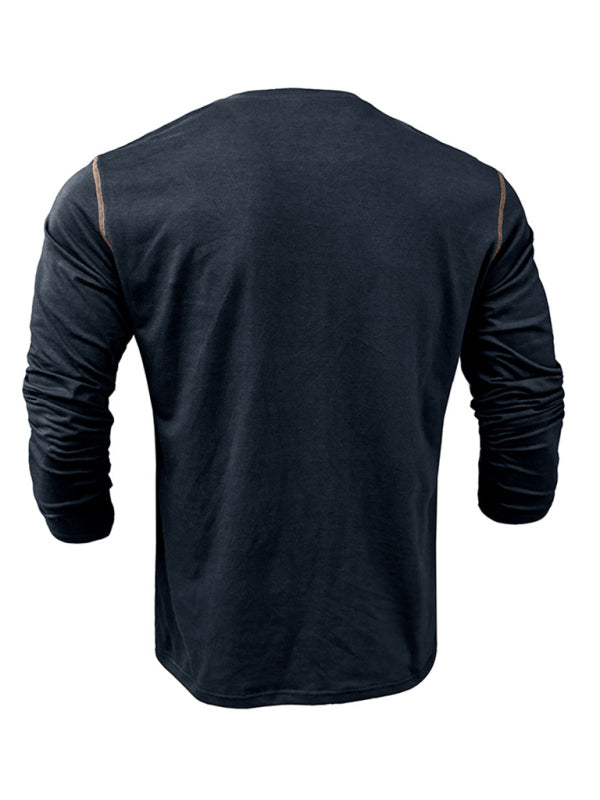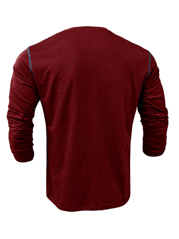 New Men's Henley Color Block Knitted Long Sleeve T-Shirt