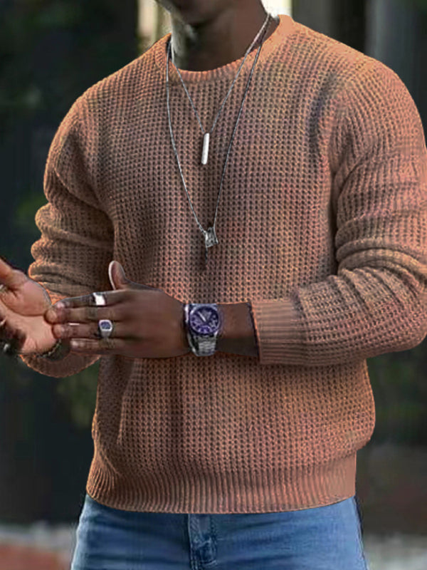 New men's long john solid color waffle thin round neck long-sleeved shirt