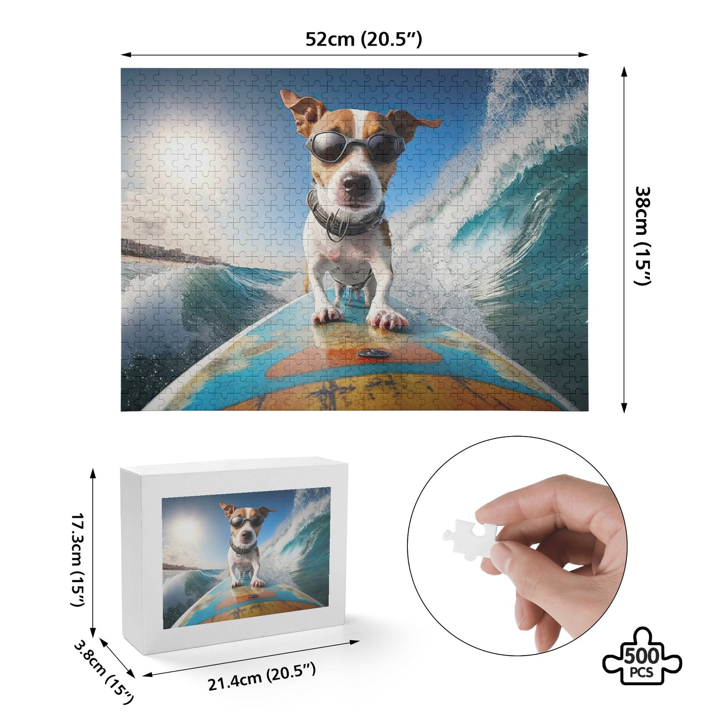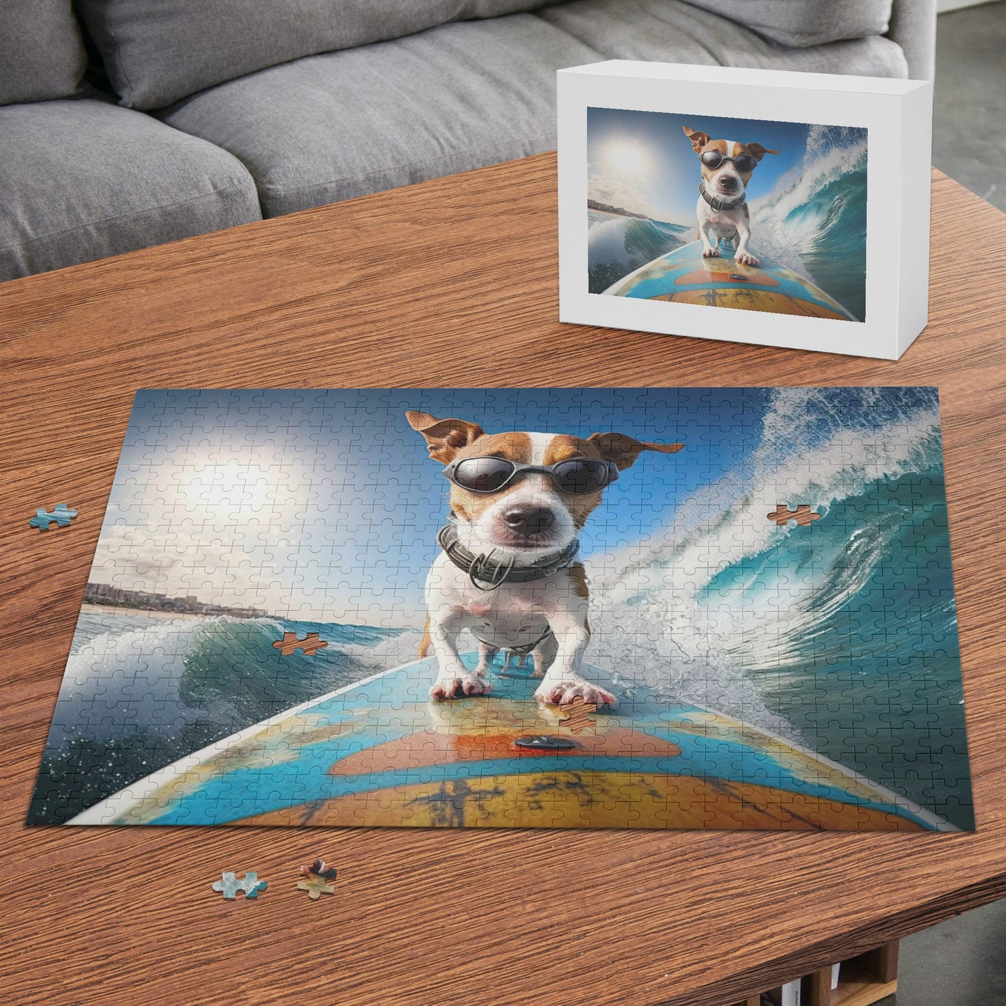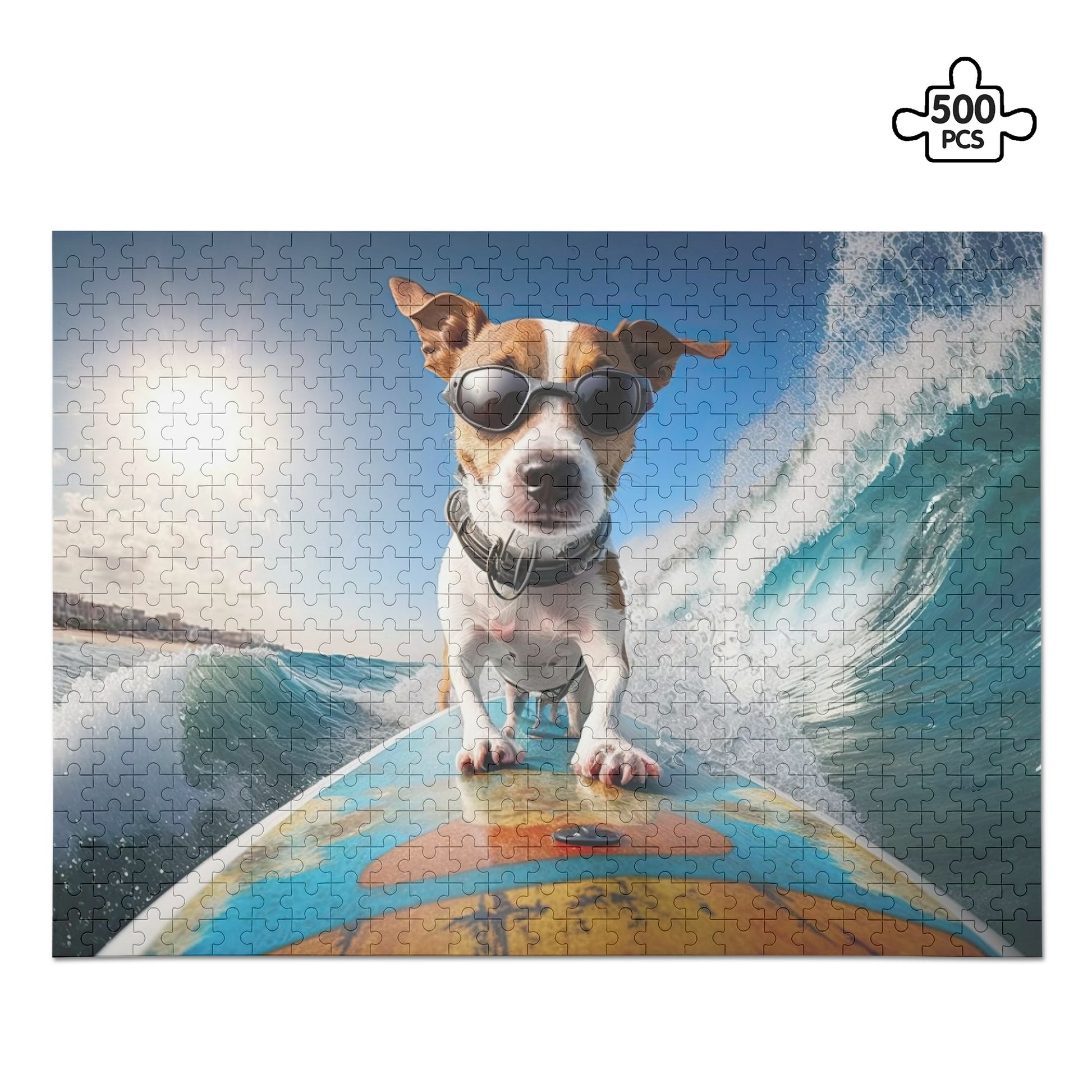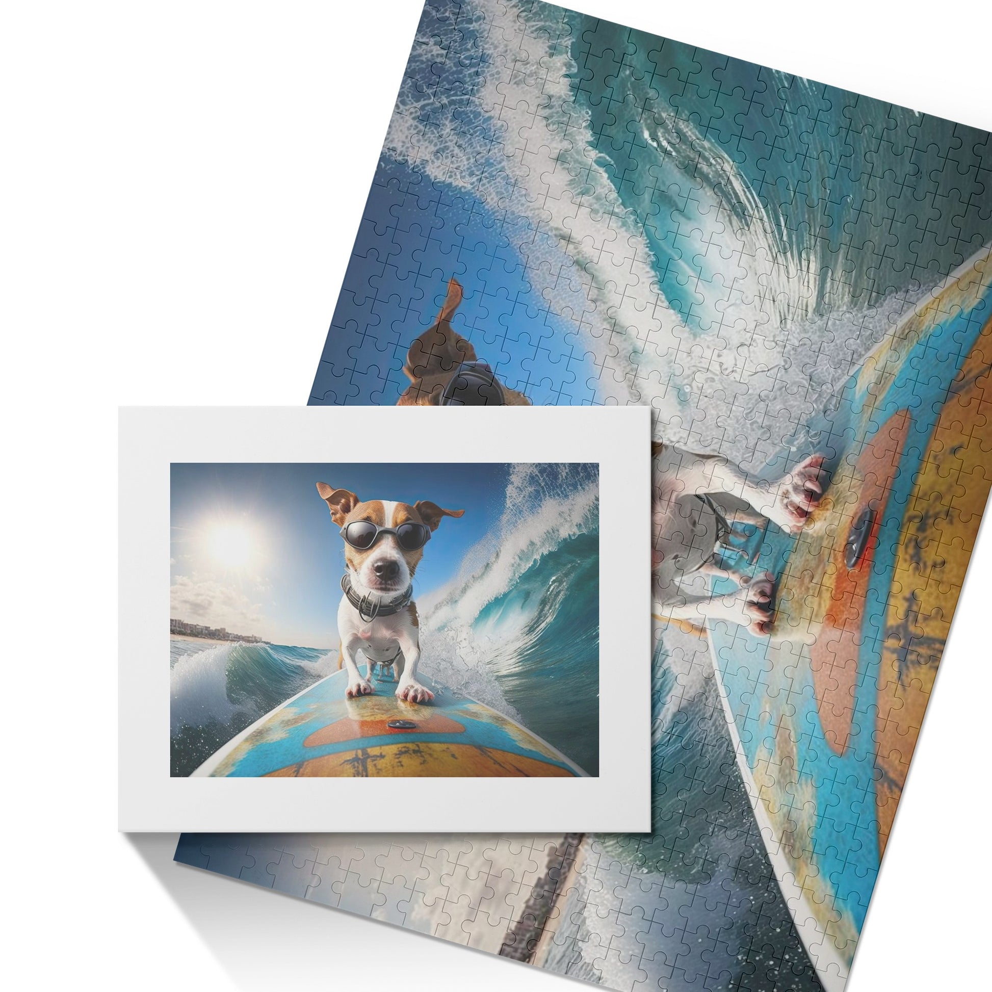 Like what you see? Yes! The surfing dog is an incredible photo, and you have the ability to either keep it as is or swap out the photo for your own favorite pet puzzle.