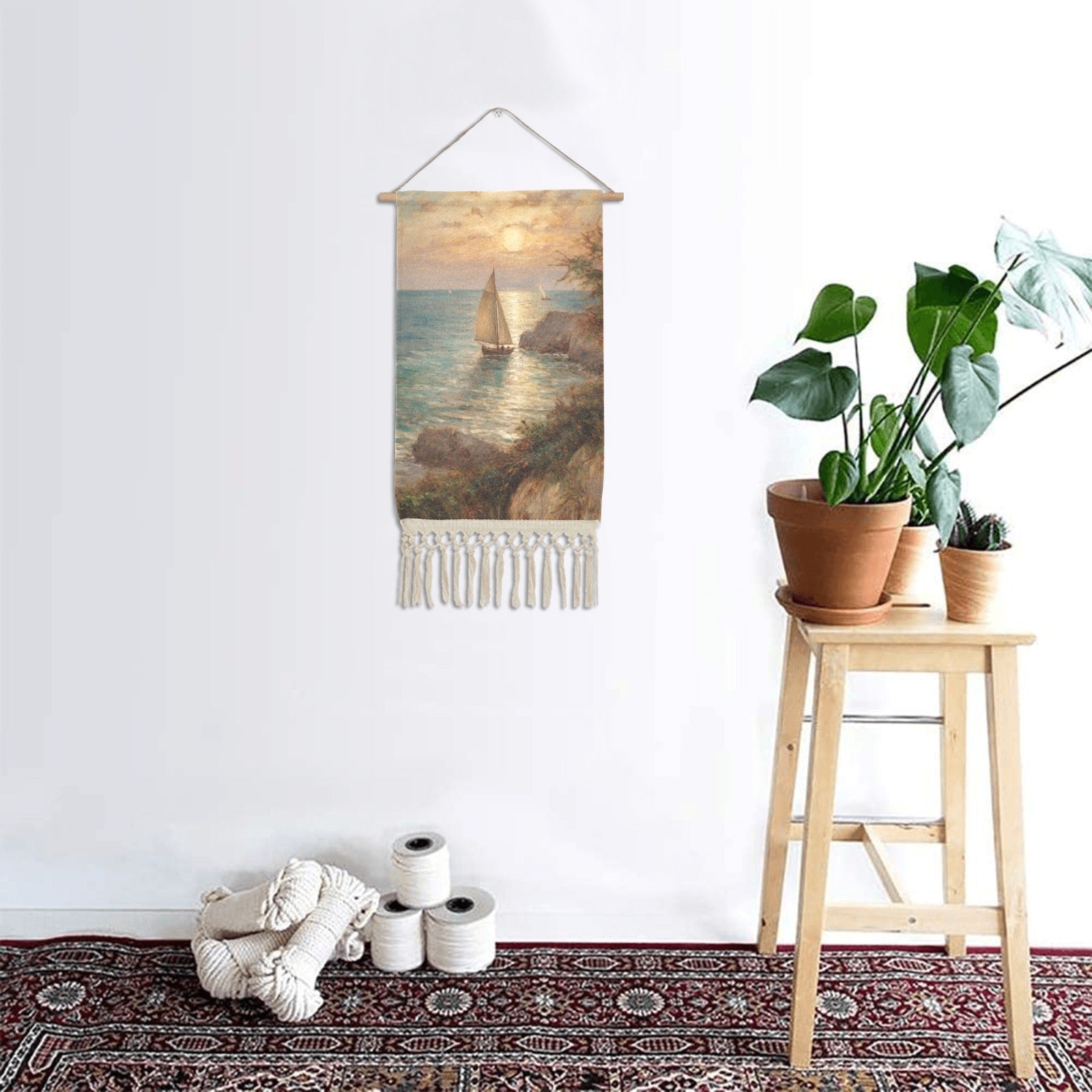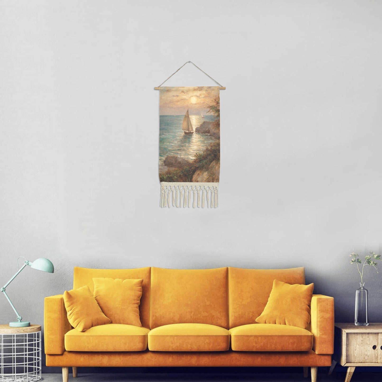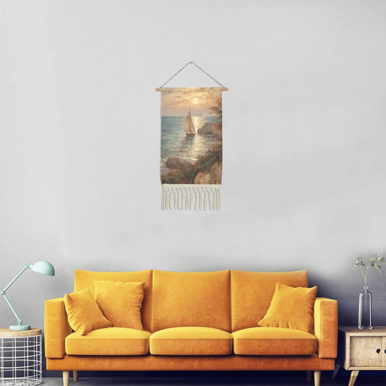 WALL ART SAILBOAT PAINTING LINEN HANGING HOME DECOR by OCEANE