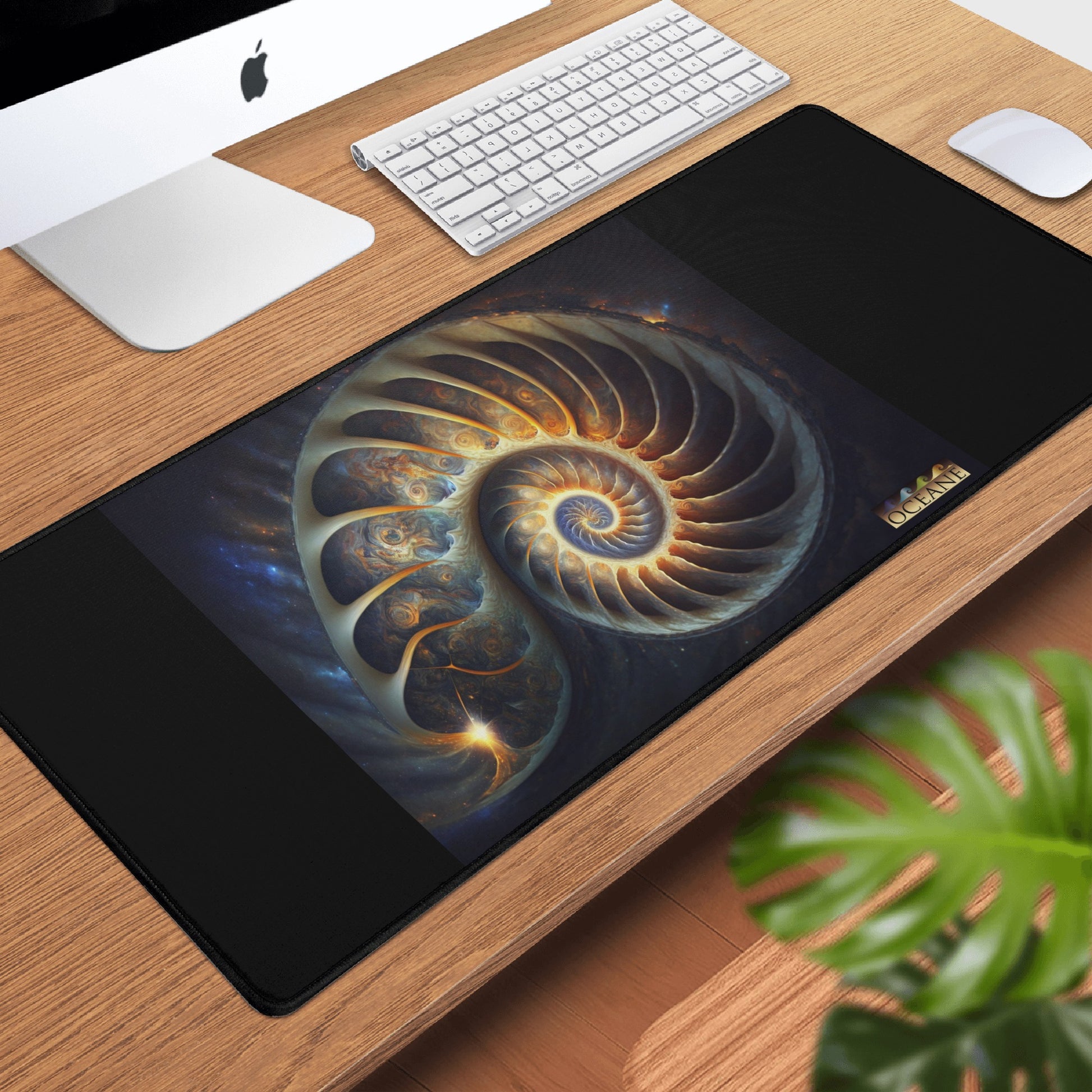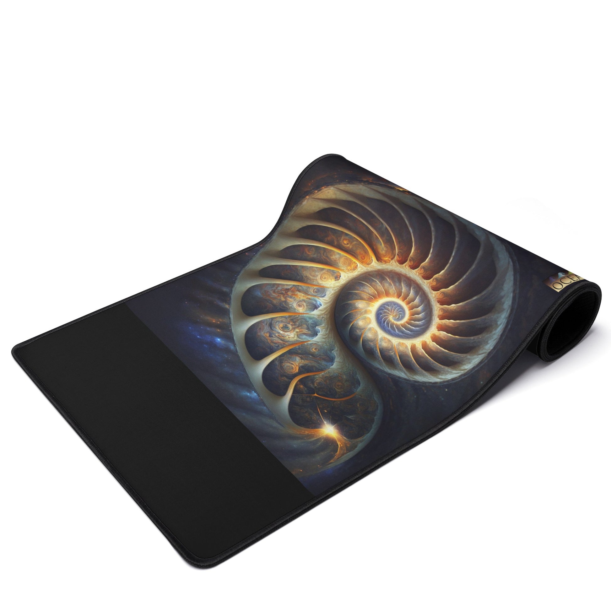 Transform your work environment into a space that inspires creativity, productivity, and relaxation. The "Fibonacci Galaxy" XL Black Mouse Mat by Oceane Love is here to redefine your desk setup.