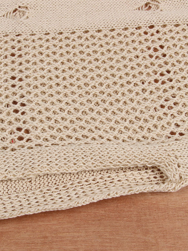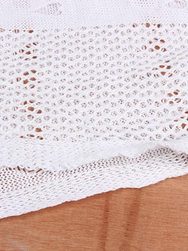 Women's two-piece tie-up fringe knit beach bikini top and skirt set