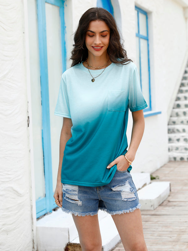 Women's Knit Round Neck Tie Dye Gradient Short Sleeve Top