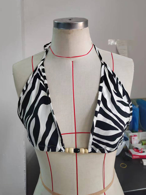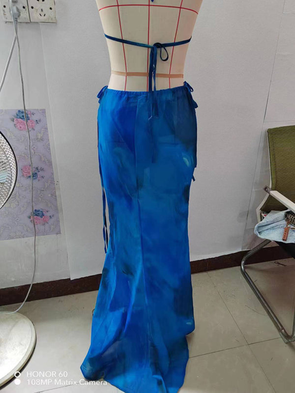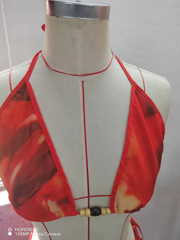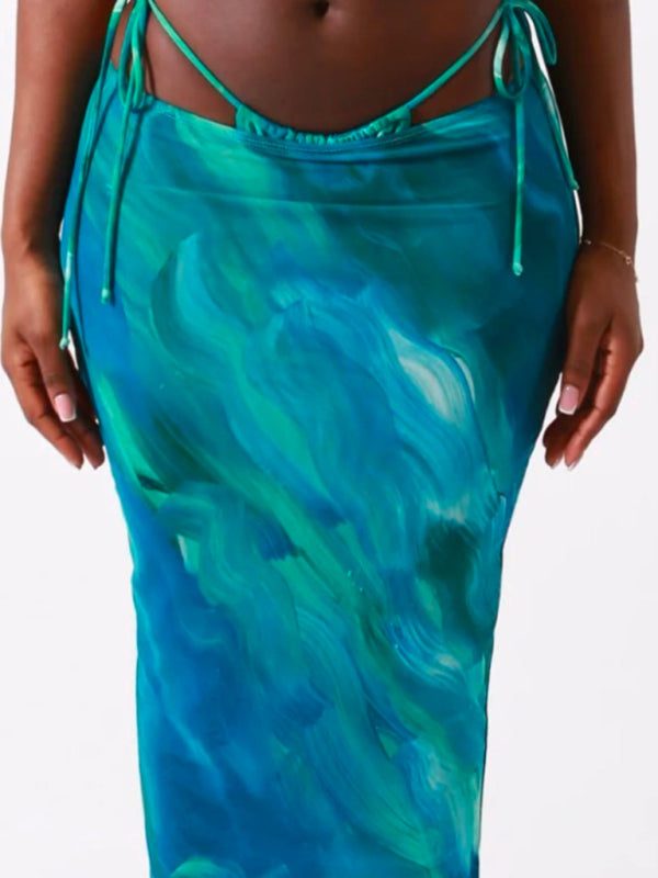 Women's new printed sexy bikini strappy skirt casual suit