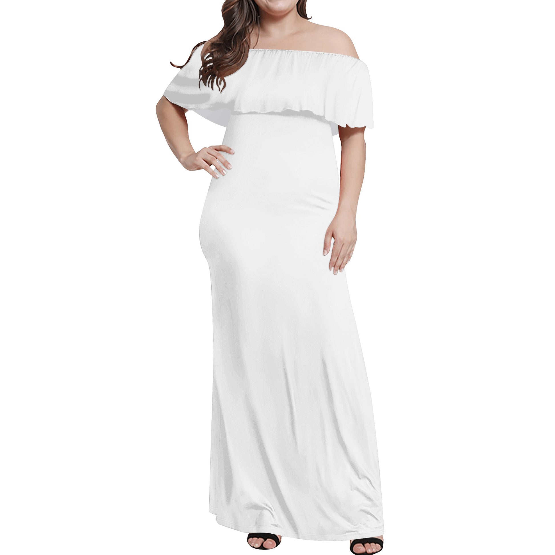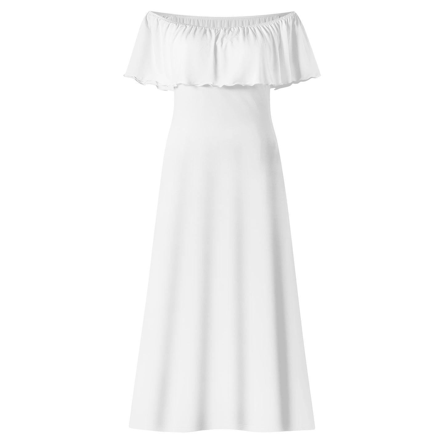 Womens Off-shoulder All Occasion Long Dress for Beach and Fine Dining in White, Teal & Black