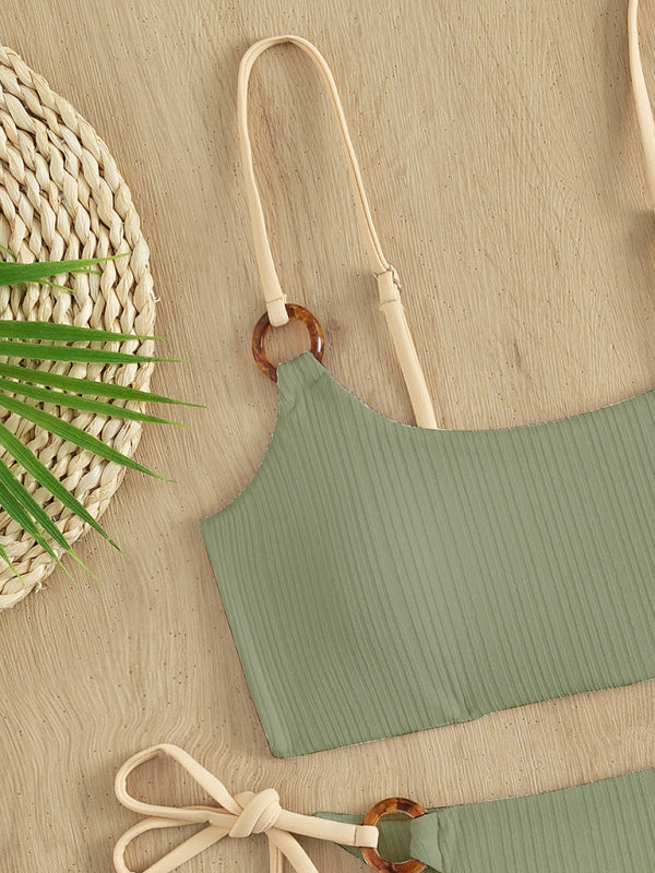 Women's solid color hoop sexy bikini sets in white & sage green