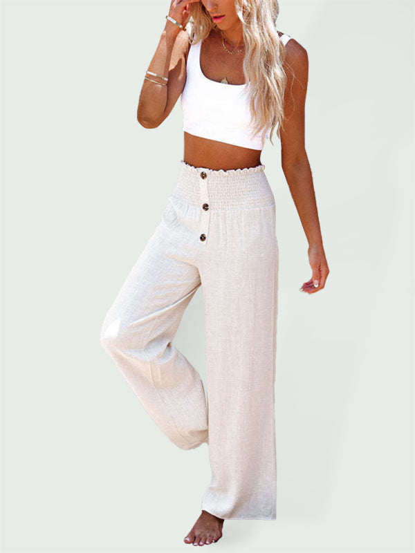 Women's trousers pure color cotton and linen loose loose casual wide-leg women's trousers